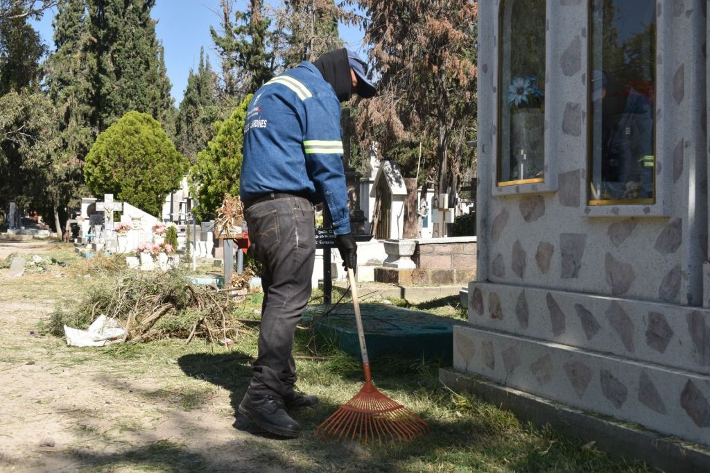 El Director de Servicios Municipales, Christian Azuara, afirma que son 90 trabajadores destinados a la tarea, sin descuidar los cementerios Españita y Milpillas.