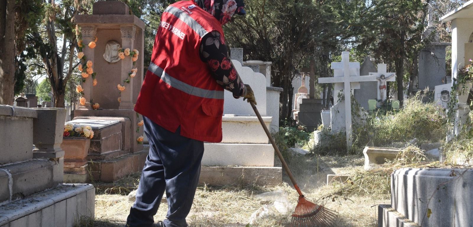 Comentó que el panteón del Saucito, el más extenso con 65 hectáreas y 115 manzanas, ya está en un 70 por ciento limpio; y añadió: “atiende los trabajos una brigada de 90 trabajadores que están destinados al aseo del Saucito, pero sin desatender al Españita y Milpillas donde el flujo de visitantes es menor”.