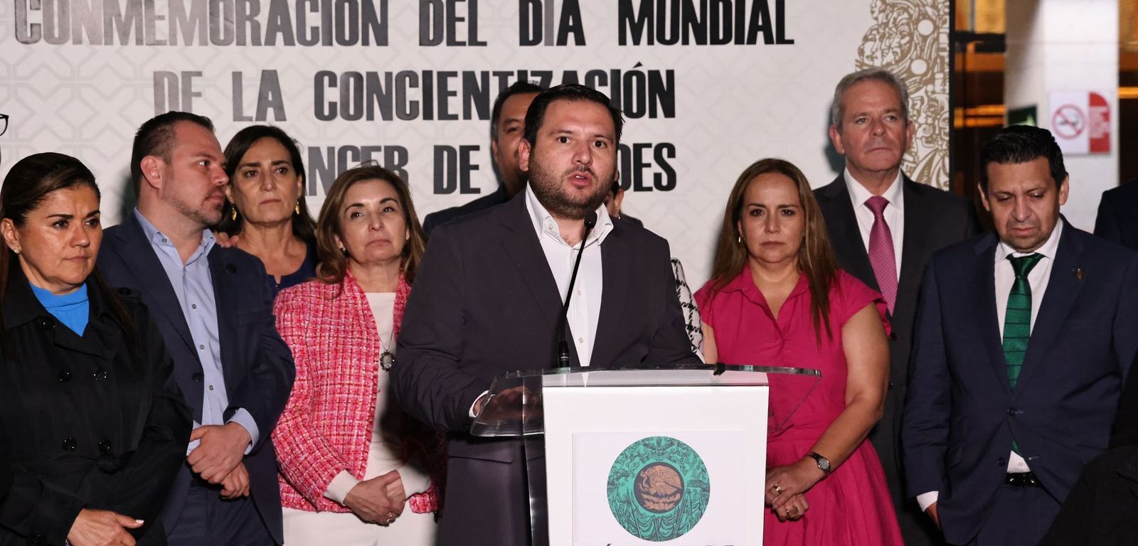 David Azuara Zúñiga, Diputado Federal del Partido Acción Nacional (PAN), hizo un llamado a visibilizar las carencias que enfrentan los pacientes de cáncer en el sistema de salud pública, ello, durante el evento de “Conmemoración del Día Mundial de la concientización del cáncer de tiroides” que iluminó de manera simbólica la fachada de San Lázaro.