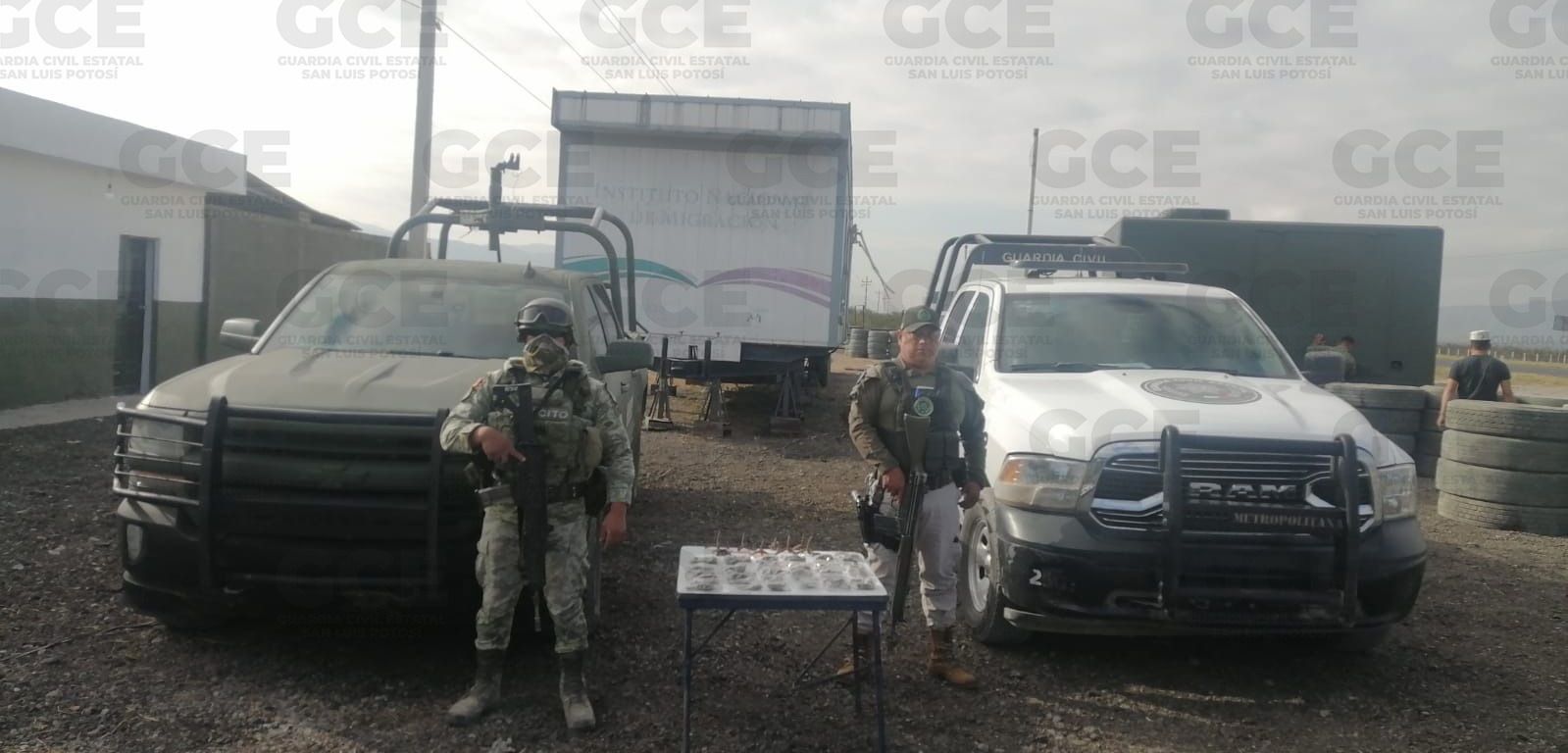 El hecho se registró en la localidad de El Huizache, donde efectivos de la GCE y SEDENA, ubicaron una bolsa de tela, que al ser inspeccionada había 25 bolsas con lo que parecía ser una hierba verde y seca, con las características físicas de la marihuana, dando un total aproximado de 546 gramos de dicho enervante, además de ocho artefactos de varilla, conocidos como “poncha llantas”.