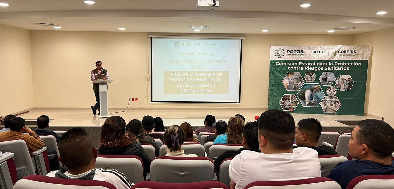 Para que la atención que se brinda en los Centros de Atención para Adultos Mayores, así como en establecimientos dedicados a la rehabilitación de adicciones sea de calidad y no represente un riesgo sanitario, los Servicios de Salud de San Luis Potosí a través de la Comisión Estatal de Protección Contra Riesgos Sanitarios (COEPRIS) capacitaron a un total de 55 responsables y trabajadores operativos.