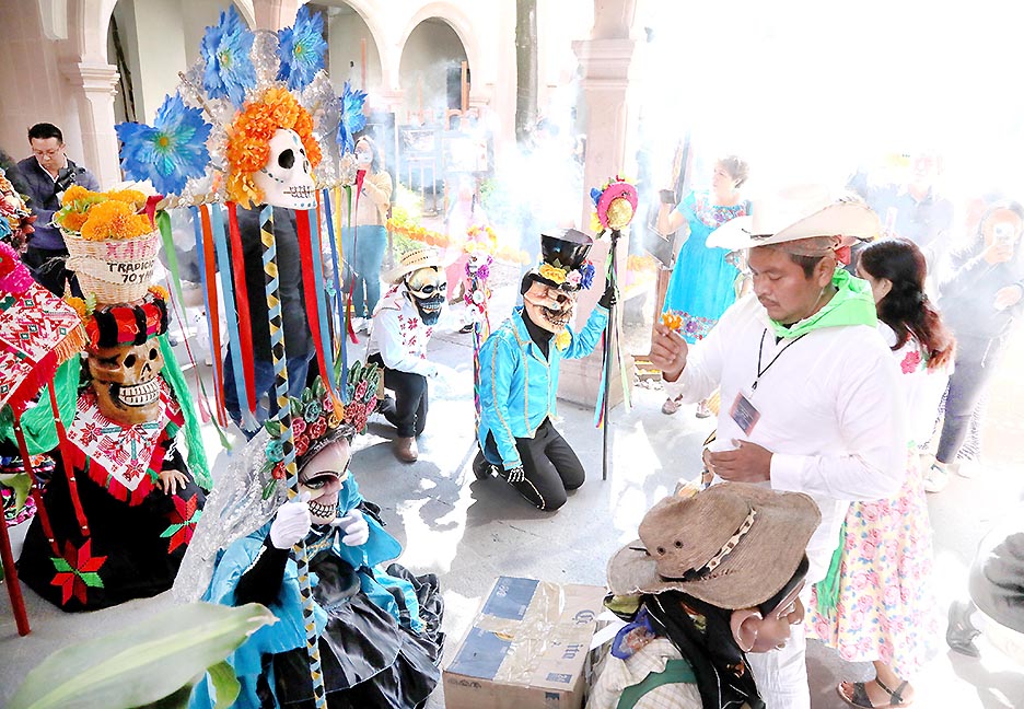 La presentación estuvo a cargo de la ´”Comparsa 70 y más”, de Tampacán, que dirige el profesor Agustín Javier Hernández, quien explicó la tradición del ciclo de Xantolo, que inicia el 29 de septiembre, en el marco de la fiesta de San Miguel Arcángel, que se reconoce como el guardián de los dos mundos.