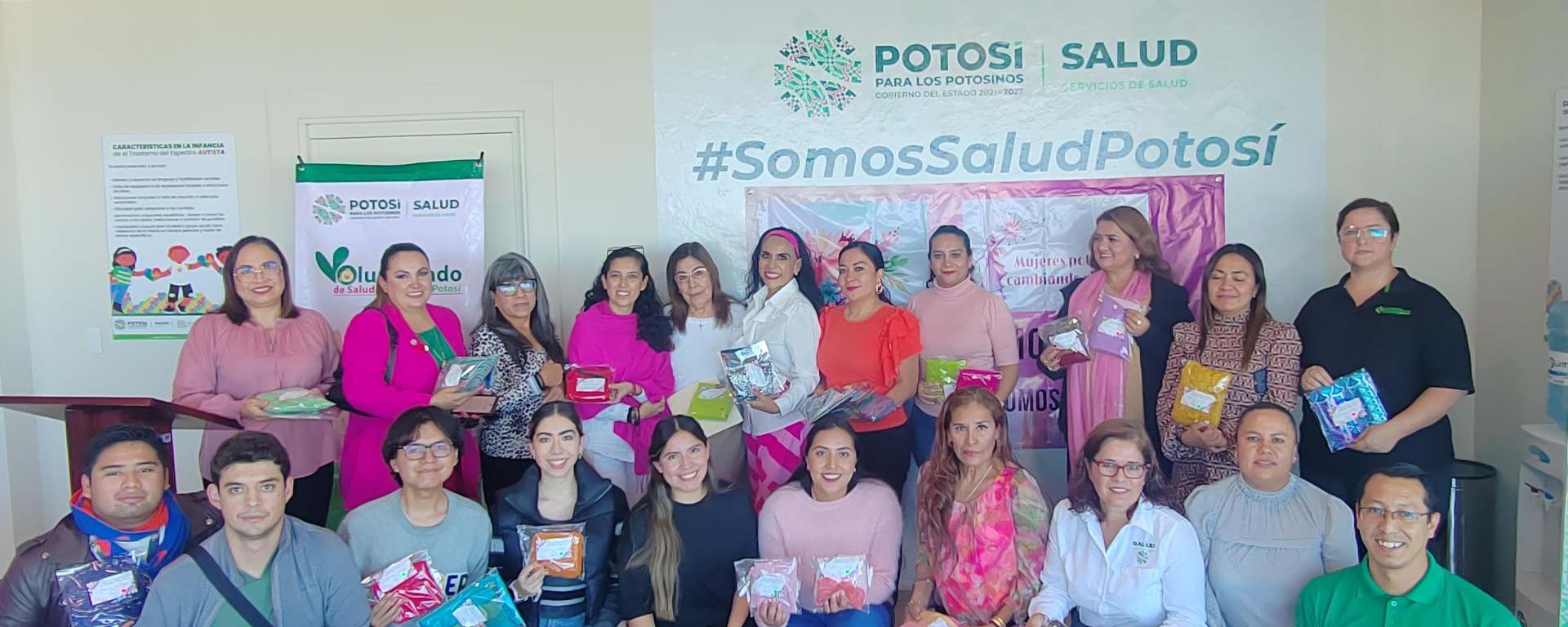 Con el objetivo de brindar apoyo emocional a mujeres con cáncer de mama que han perdido su cabello, el Voluntariado de los Servicios de Salud recibió la donación de 100 pañoletas y turbantes de la asociación de Mujeres Potosinas Cambiando Vidas A.CL.