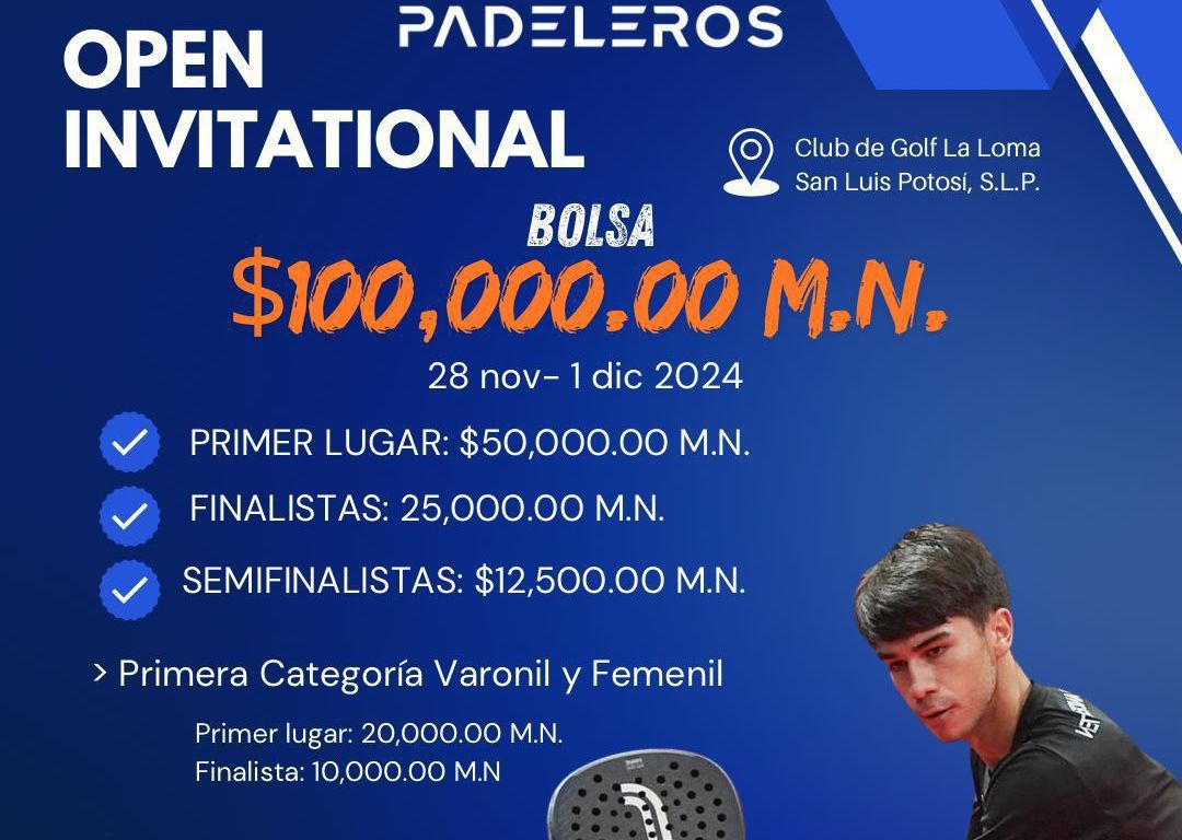 El Ayuntamiento de San Luis Capital, a través de las Direcciones de Turismo y Deporte Municipal, invitan al público en general de todas las edades, a participar e inscribirse en el “Primer Torneo Anual de Padeleros 2024” y el “Open Invitational”.