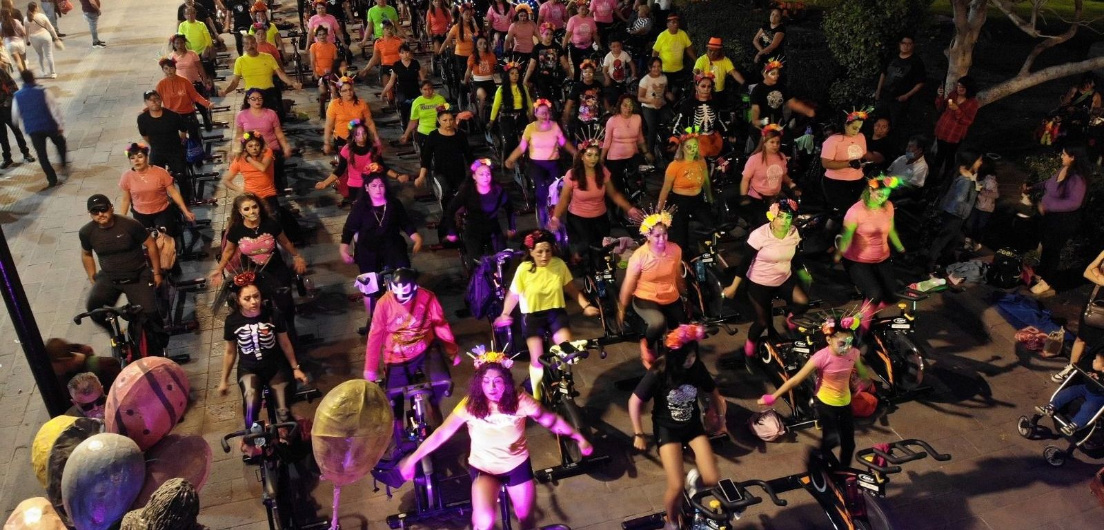 El Gobierno de la Capital, a través de la Dirección de Deporte Municipal, llevaron a cabo una vistosa Súper Clase de Spinning, con temática “Catrina”, en el marco de los festejos por el Día de Muertos, lo que hizo que el primer cuadro de la ciudad luciera con una gran activación física al ritmo de la música, en un evento gratuito donde miles de asistentes al centro histórico atestiguaron el gran ambiente que se vivió.