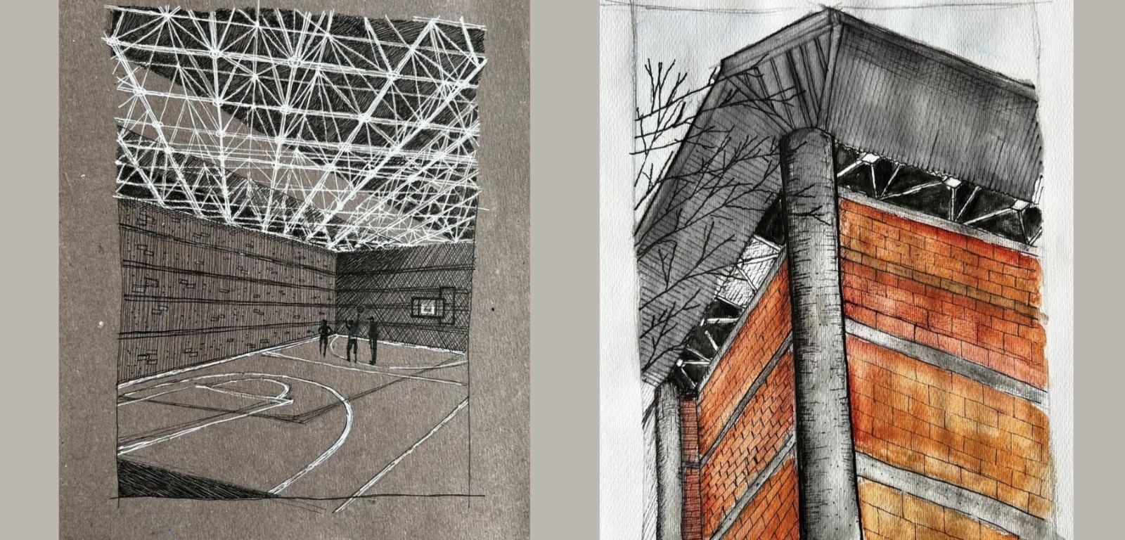 Chávez Puente explicó que eligió una perspectiva desde la cancha techada, compleja en su diseño estructural. El uso de plumones blancos y negros sobre una hoja gris aportó profundidad y estilo a su obra, lo que la diferenció de los demás participantes. “Estoy muy contento de haber competido y de haberme medido con grandes personalidades del mundo de la arquitectura”, expresó.