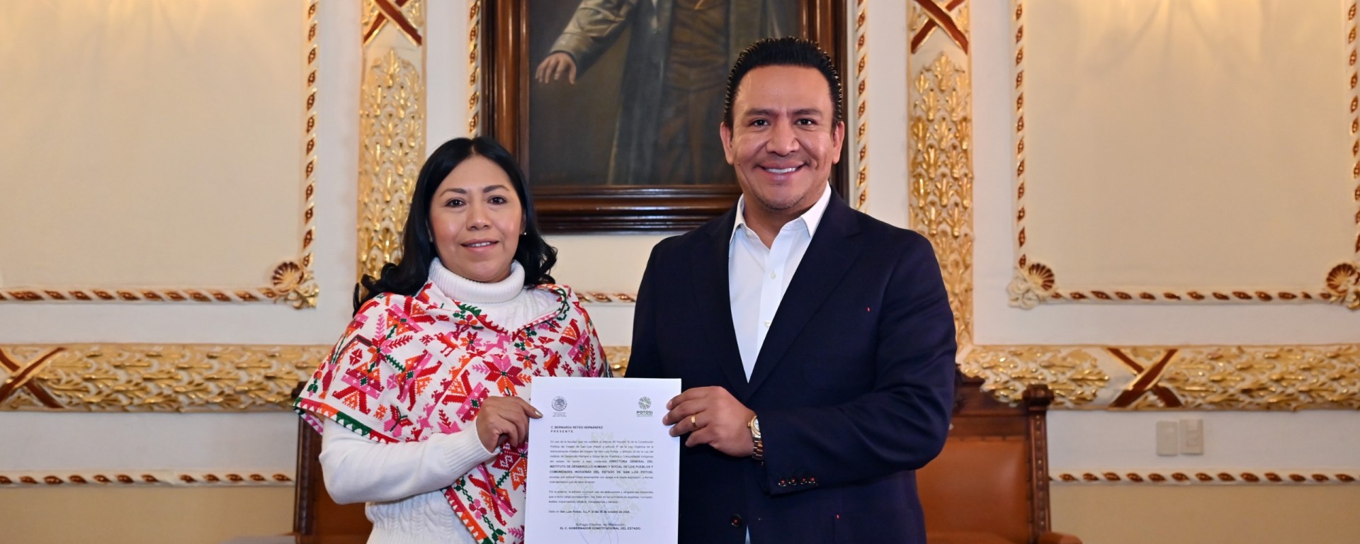 Con la representación del Gobernador Ricardo Gallardo Cardona, el secretario general de Gobierno, J. Guadalupe Torres Sánchez tomó la protesta de ley a la y el nuevo titular del Instituto de Desarrollo Humano y Social de Los Pueblos y Comunidades Indígenas del Estado (Indepi), Bernarda Reyes Hernández y del Sistema para el Financiamiento del Estado (Sifide), Jovanny de Jesús Ramón Cruz.