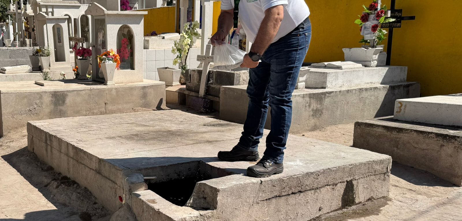 Previo a Día de Muertos, se han recorrieron los panteones y se llevaron a cabo acciones de saneamiento básico como: cloración y aplicación de abate en piletas, tambos aljibes y depósitos de agua, monitoreos de cloro residual en el agua que es para consumo humano (llaves y sanitarios), supervisión de la infraestructura sanitaria y del adecuado manejo de basura, eliminación de criaderos de moscos y termonebulizaciones. Además se capacitó a 101 expendedores de alimentos que se instalarán en los alrededores de los panteones; entre las temáticas que se abordaron se encuentran: Manejo Higiénico de Alimentos, Temperaturas Adecuadas para la Conservación, Desinfección de Agua y Uso de Plata Coloidal para la Desinfección de Frutas y Verduras.