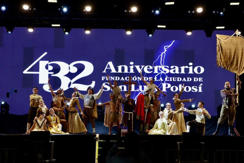 En la apertura de este magno espectáculo, se presentó la escenificación denominada «San Luis de Oro y Plata», a cargo de artistas locales multidisciplinarios, para impulsar el talento potosino por parte del Ayuntamiento Capitalino. A través de este performance, mediante la danza, la protección de espacios emblemáticos de la ciudad y llamativo vestuario, contaron pasajes de la historia de la ciudad, actuación que también cautivó a una repleta Plaza de Fundadores.