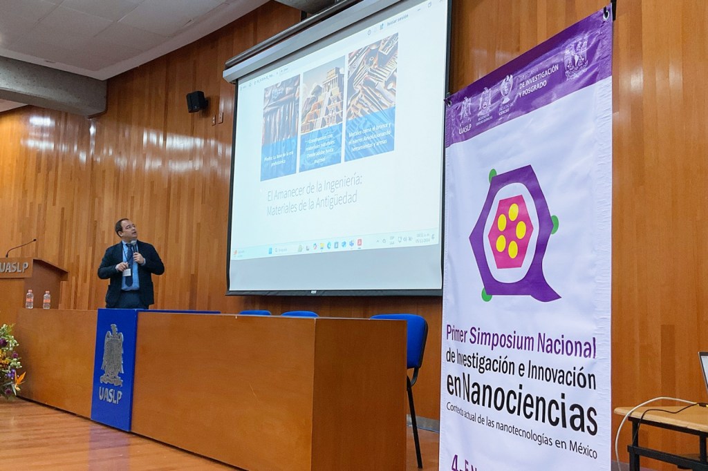 El doctor José Rubén Morones Ramírez, director del Centro de Investigación en Biotecnología y Nanotecnología de la Universidad Autónoma de Nuevo León (UANL) ofreció la conferencia magistral “La nanotecnología y su rol en México en el sector salud y de sistemas de producción” en el primer Simposium Nacional de Investigación e Innovación en Nanociencias, que organizan las facultades de Ciencias Químicas (FCQ) y de Ciencias, así como la Secretaría de Investigación y Posgrado de la Universidad Autónoma de San Luis Potosí (UASLP).