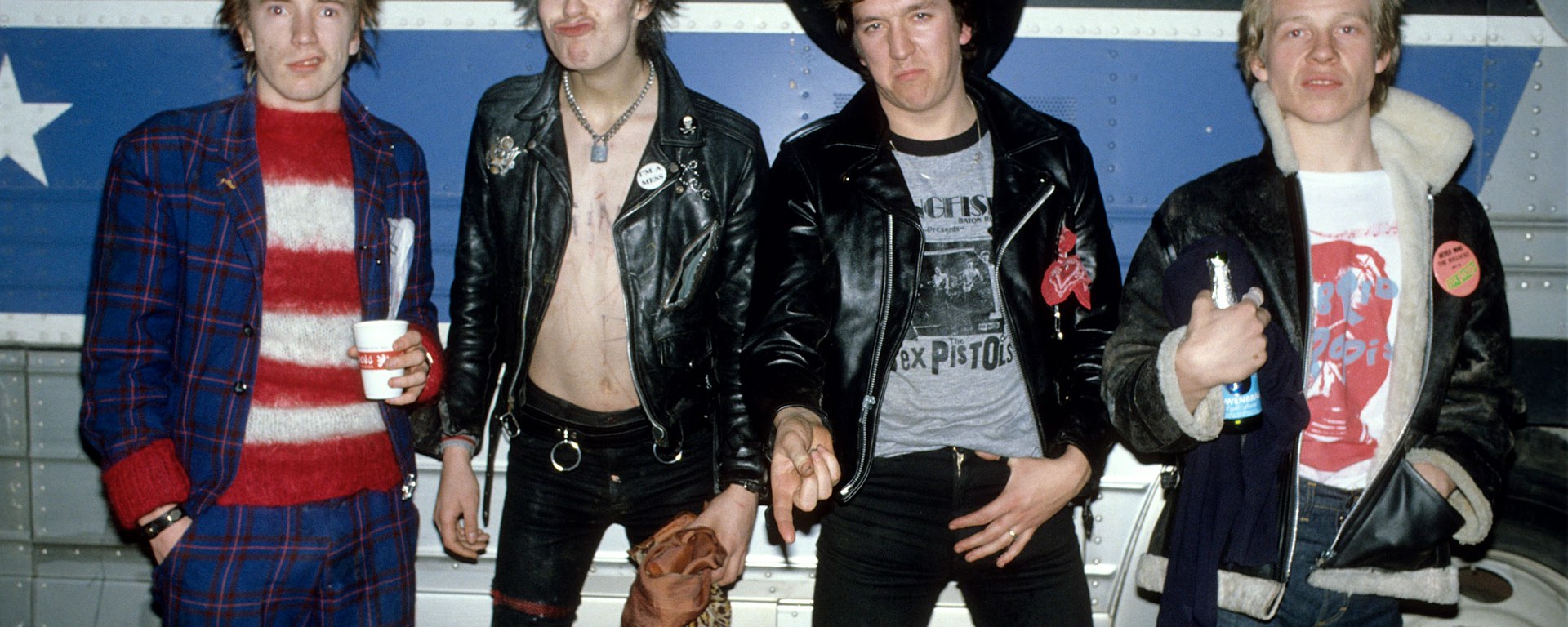 Sex Pistols fue una banda de punk formada en Londres en 1975, considerada por algunas fuentes la responsable de haber iniciado el movimiento punk en el Reino Unido y de inspirar a muchos músicos de punk rock, heavy metal y el rock contemporáneo en general. Su primera etapa apenas duró dos años y medio y en ella produjo únicamente cuatro sencillos y un álbum de estudio: Never Mind the Bollocks, Here’s the Sex Pistols (1977).