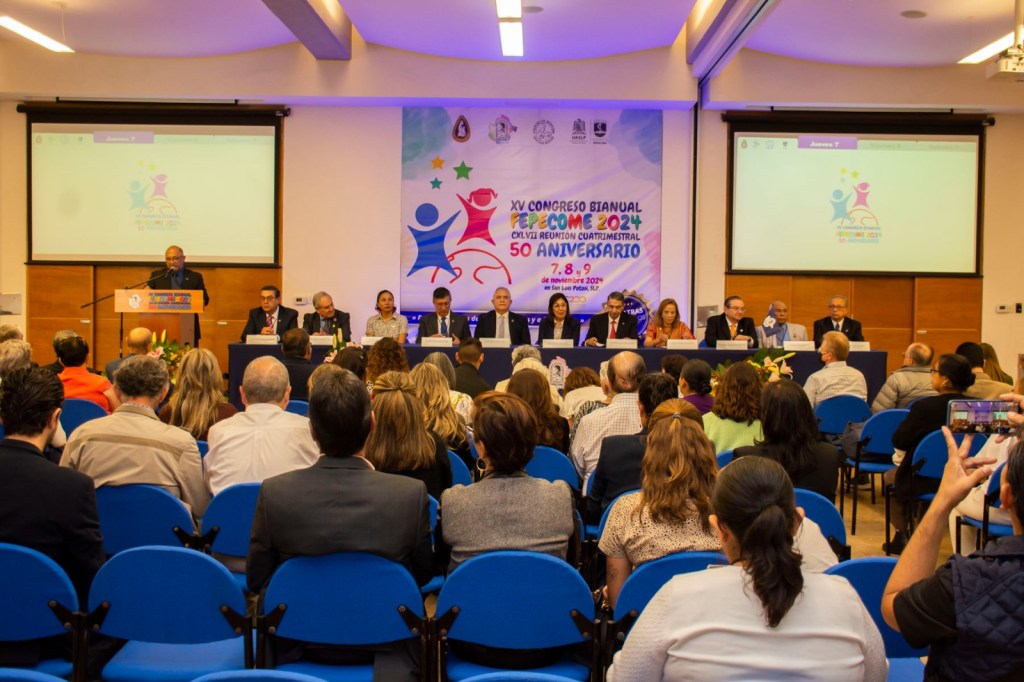 El XV Congreso Bianual de la Federación de Pediatría del Centro Occidente de México (Fepecome), con el que se celebra el 50 aniversario de la organización, fue inaugurado este 7 de noviembre en Centro Cultural Universitario Bicentenario de la Universidad Autónoma de San Luis Potosí (UASLP), y reunió a estudiantes, pediatras de distintos estados del país, familiares de médicos homenajeados y diversas autoridades, para destacar la importancia de esta especialidad médica en México y su crecimiento académico.