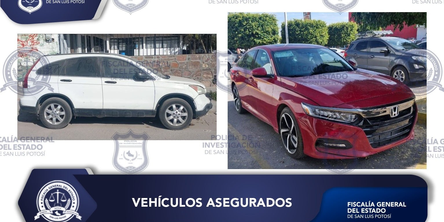 Por otro lado, un Honda tipo Accord, modelo 2021, color rojo, fue asegurado en Salvador Nava y Rutilo Torres, en el estacionamiento de una plaza comercial, sin tripulante y sin condiciones para rodar; del mismo no se pudo obtener el número de serie original. Al momento de su aseguramiento nadie se ostentó como propietario.