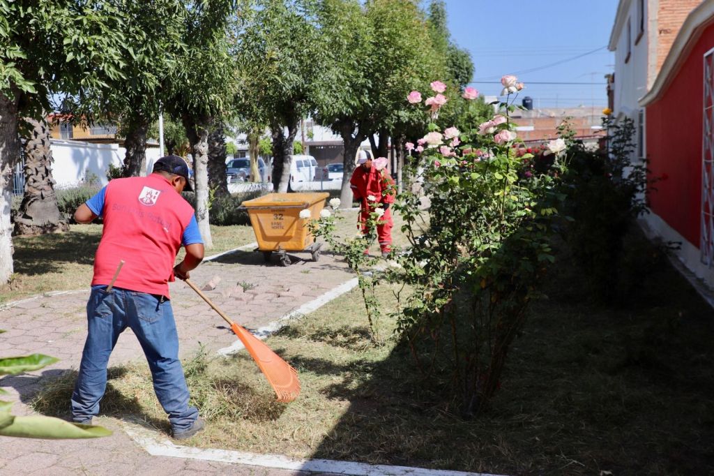 Simultáneamente se intervienen cuatro jardines públicos con trabajos de limpieza y remozamiento en la misma colonia.