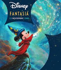 «Fantasía» es una película animada producida por Walt Disney y lanzada en 1940. Un fracaso taquillero para ese momento. Fue un proyecto único en la historia del cine y la animación, ya que combina música clásica con secuencias animadas creando una experiencia cinematográfica innovadora y artística.