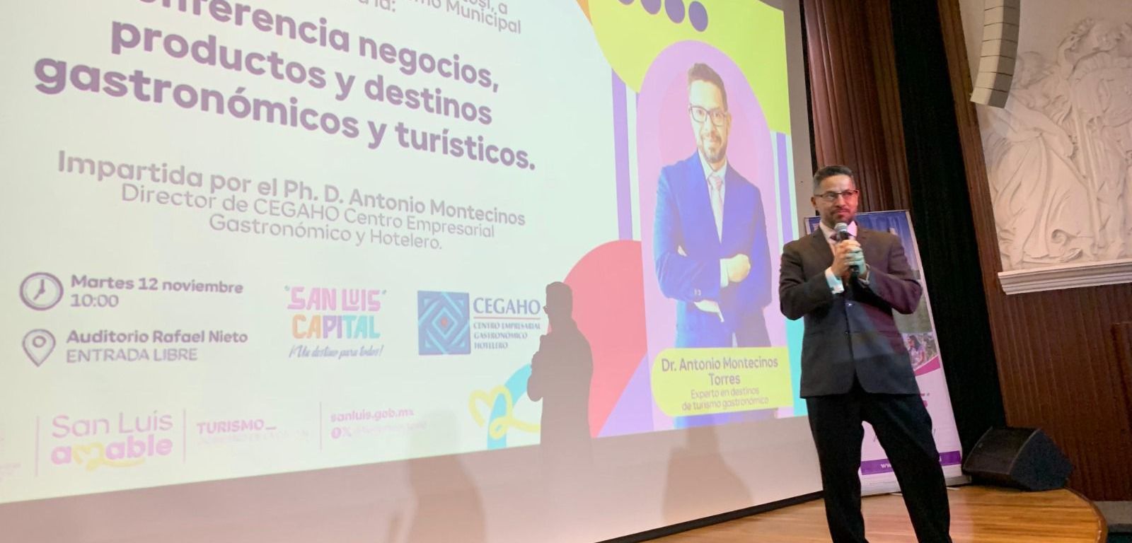 El experto en la materia afirmó lo anterior, en el evento se llevó a cabo en el Auditorio Rafael Nieto y organizó la Dirección de Turismo Municipal, en el cual asistieron estudiantes de gastronomía, hoteleros, y restauranteros de San Luis Capital, ciudad en donde se destaca la gastronomía, el turismo y la cultura.