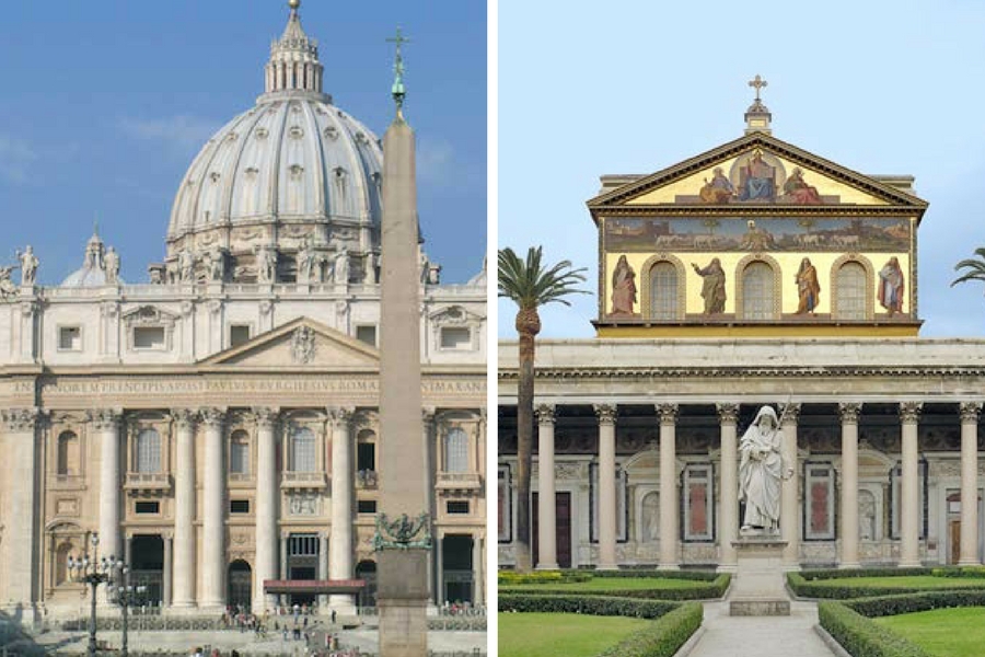 Según la tradición, el martirio de San Pedro tuvo lugar en los jardines de Nerón en el Vaticano, donde se construyó el Circo de Calígula y se afirma que fue sepultado cerca de ahí. Algunos autores sostienen que, en el año 258, se trasladaron temporalmente las reliquias de San Pedro y San Pablo a una catacumba poco conocida llamada San Sebastián a fin de evitar una profanación, pero años después, las reliquias fueron trasladadas al lugar en que se hallaban antes. En el año 323, Constantino comenzó a construir la basílica de San Pedro sobre el sepulcro del Apóstol. Permaneció idéntica por dos siglos, y poco a poco los Papas fueron estableciendo junto a ella, al pie de la colina Vaticana, su residencia, tras el destierro de Aviñón. En 1506, el Papa Julio II inauguró la nueva Basílica proyectada por Bramante. La construcción duró 120 años. La nueva basílica de San Pedro, tal como se ve hoy, fue consagrada por Urbano VIII el 18 de noviembre de 1626, y el altar mayor fue construido sobre el sepulcro de Pedro.