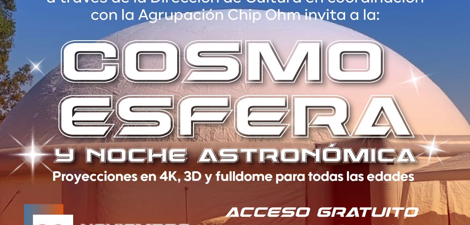 El Gobierno Municipal, a través de la Dirección de Cultura en colaboración con la Agrupación Chip Ohm, invitan a los visitantes del Centro Histórico para que este viernes 22 de noviembre tengan una experiencia única con la Noche Astronómica en la Cosmo esfera que se instalará en Plaza de los Fundadores, de 5 de la tarde a 9 de la noche.