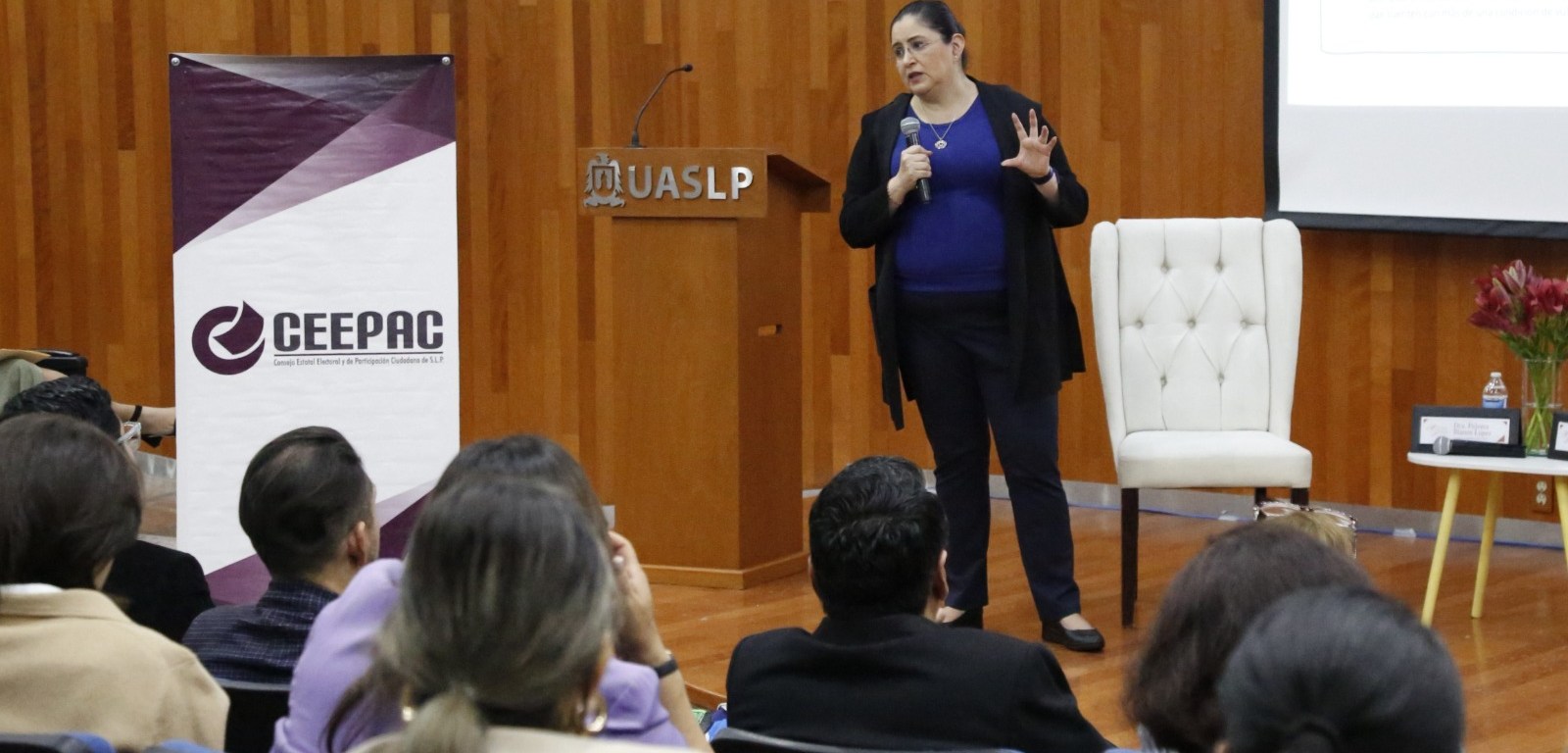 La Presidenta Consejera del CEEPAC, Paloma Blanco López dio las palabras de bienvenida a la ponente, destacando la trayectoria que ha tenido en la política del país.