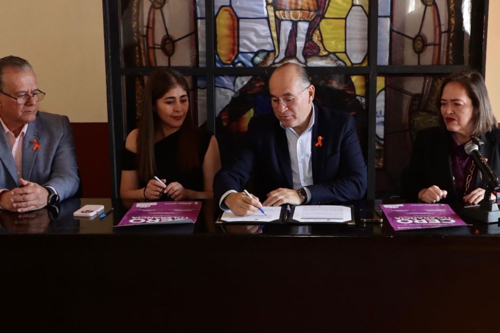 Durante la firma del posicionamiento, en Palacio Municipal, el Primer Edil refrendó el compromiso de una vida libre de violencia para la población femenina; la Directora de la Instancia de las Mujeres, Martha Orta catalogó este acto como trascendental para confirmar la postura oficial._