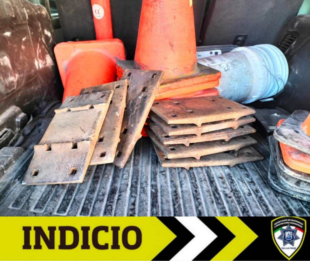 Los agentes municipales realizaron la detención del hombre señalado, quien fue plenamente identificado por la parte afectada que indicó querer proceder legalmente. En la detención, el implicado de nombre Francisco Javier “N” de 40 años, fue encontrado en posesión de ocho placas de asiento, las cuales se encontraron en un carrito de supermercado, con dimensiones de 36 cm x 20 cm, con un peso aproximado de 14 kilogramos cada una.