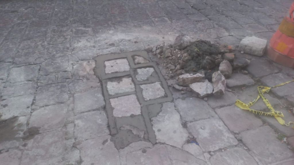 En la calle de Melchor Ocampo y Uresti se realizaron trabajos en donde se repararon adoquines, así como tambíen se revisó que no se presentaran fugas de agua potable o drenaje, y las obras se realizaron de manera rápida para evitar entorpecer el tráfico.