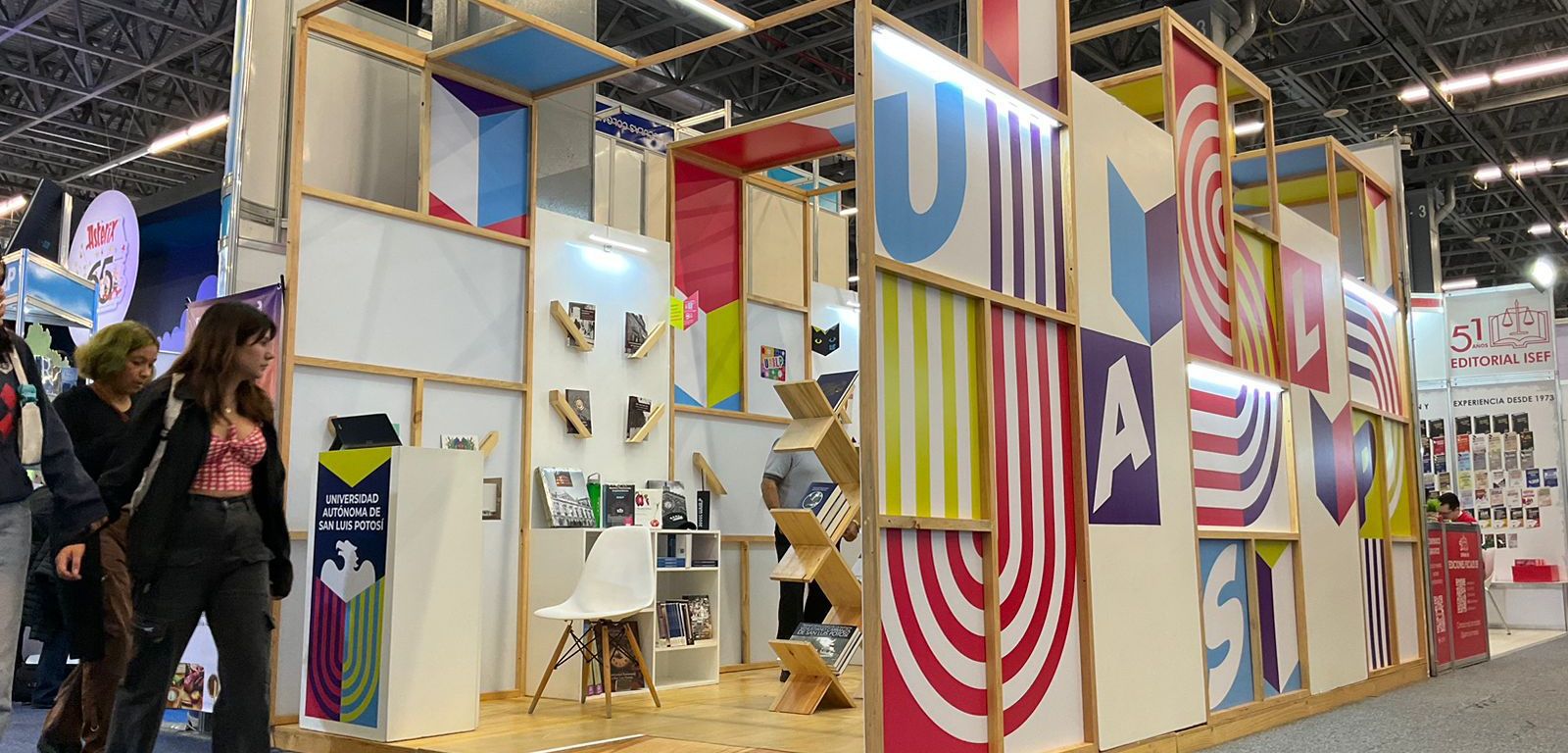 Cabe destacar que todos los títulos se exhiben en un colorido stand diseñado y elaborado por el equipo creativo de la Dirección de Comunicación e Imagen de la UASLP, bajo la dirección del LDG. Luis Boix Torres e integrado también por Miguel Ángel Santana, Karen Mercado y Joselin Pérez Camarena; con el apoyo de Abel Ávalos y Christian Josué Mata Ferrer. El espacio hace referencia a los libros abiertos y a la digitalización de la literatura, a través de un fondo de realidad aumentada, el cual puede ser visible a través de la descarga de una aplicación.