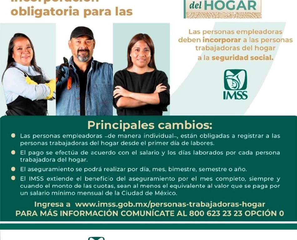Resaltó que, al emplear a personas para trabajar en el hogar se adquiere la obligación de registrarlas ante el IMSS, ya que, cumplir con ese deber confiere a las mismas, protección amplia de las prestaciones económicas y sociales, las cuales contribuyen al equilibrio económico y al desarrollo integral de las personas; además de garantizar la atención médica para su núcleo familiar.