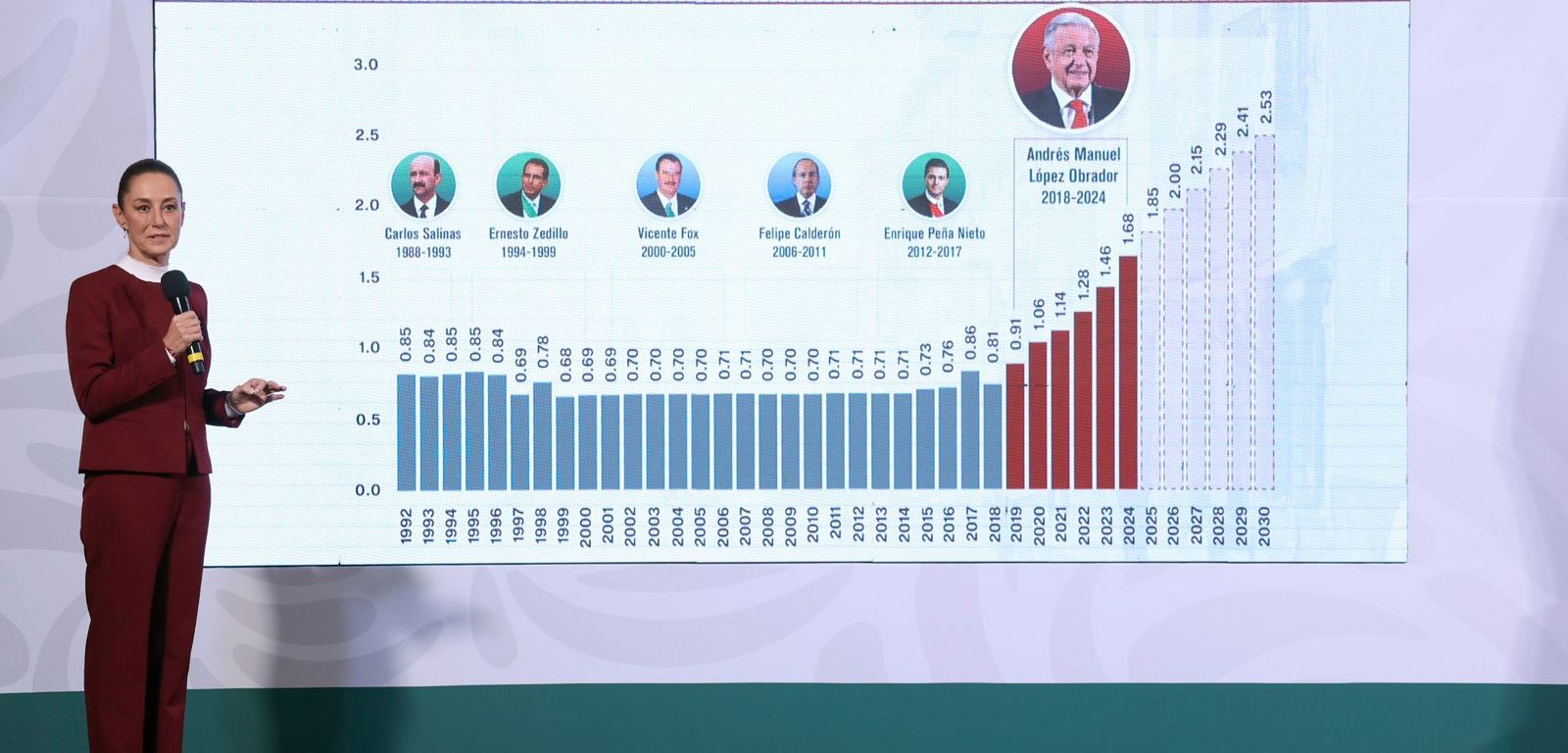 La Presidenta de México, Claudia Sheinbaum Pardo, anunció que tras un buen acuerdo con el sector empresarial, el salario mínimo para el 2025 tendrá un incremento de 12 por ciento en todo el país, ya que pasará de 248.93 pesos a 278.80 pesos diarios; mientras que para zona de la frontera será pasará de 374.89 a 419.88 pesos.