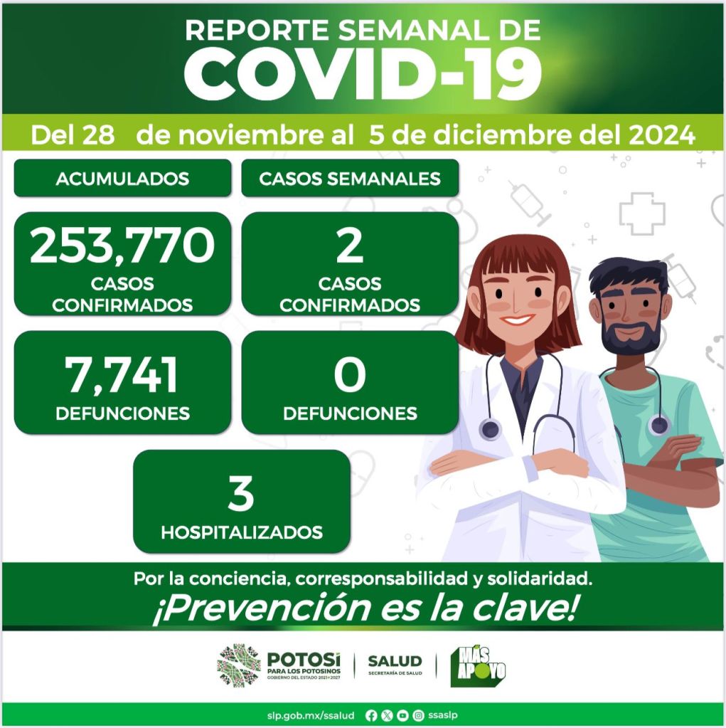 Los casos nuevos se detectaron en las jurisdicciones sanitarias III de Villa de Pozos y IV de Rioverde, y corresponden a dos mujeres en un rango de edad de 6 a 33 años, una de ellas cuenta con esquema incompleto de vacuna y la otra no está vacunada.
