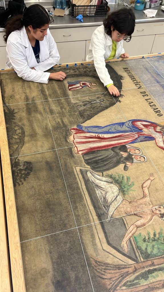 Sobre las pinturas provenientes de Zacatecas, la investigadora comentó que se trata de piezas de diferentes dimensiones, que forman una especie de telón cuaresmal que se utilizaba en las representaciones vinculadas a las fiestas de temporada en localidades indígenas de esa entidad; uno de ellos, mide alrededor de 10 metros de longitud.