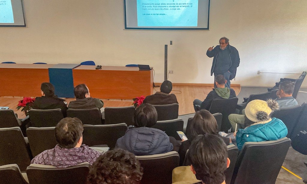 El tema de la conferencia que el doctor Fedele ofreció a la comunidad docente y estudiantil de la entidad académica anfitriona se tituló, “¿Sabemos dónde estamos?”, donde abundó sobre mecánica cuántica y el interés por saber la posición o velocidad de alguna partícula.