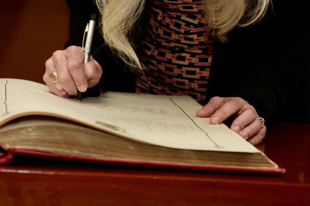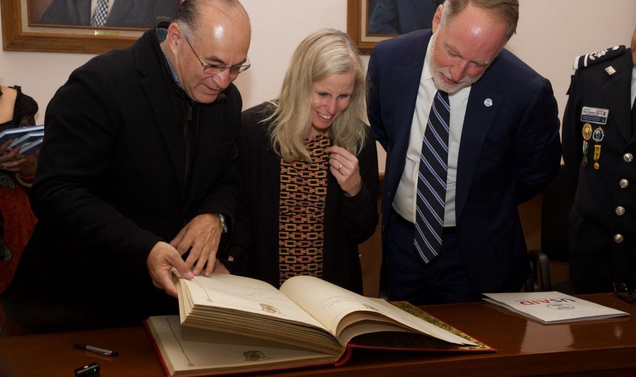 La diplomática estadounidense firmó el Libro de Oro de la Ciudad en Palacio Municipal, así como representantes de la USAID e IPA.