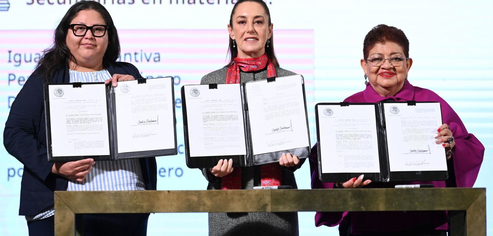 La Presidenta de México, Claudia Sheinbaum Pardo, firmó el decreto por el que se reforman y adicionan diversas disposiciones en siete leyes secundarias, con el objetivo de promover la igualdad sustantiva, la perspectiva de género, el derecho de las mujeres a una vida libre de violencia y la erradicación de la brecha salarial por razones de género.