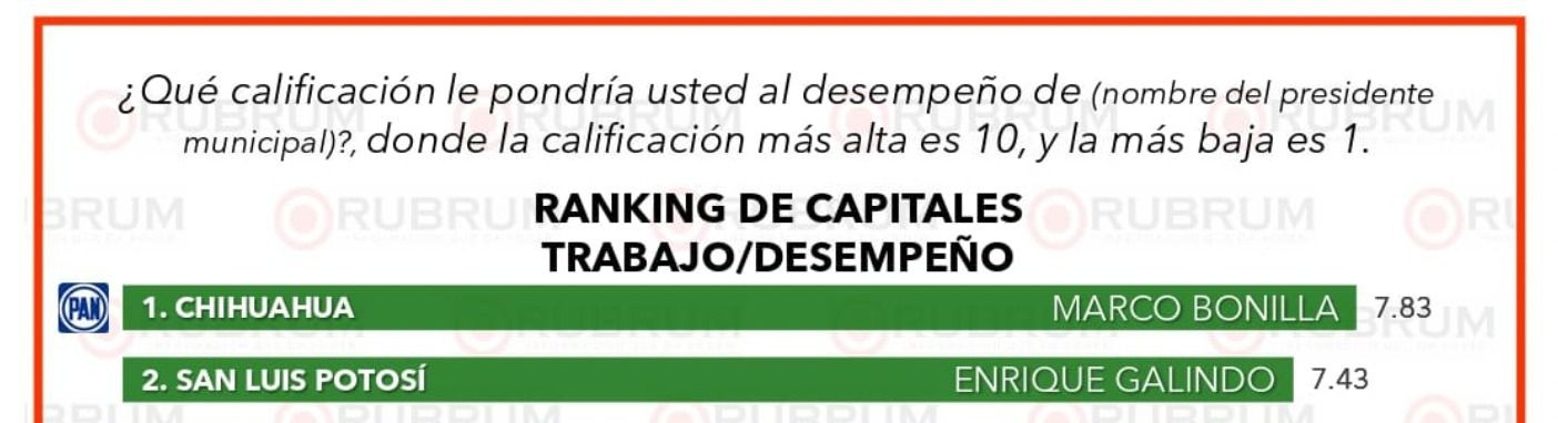 Los resultados de la encuesta de evaluación ciudadana correspondiente a diciembre de 2024, realizada en 31 capitales estatales por la firma Rubrum, colocan nuevamente al Alcalde Enrique Galindo y a su administración en general en los primeros lugares en desempeño, servicios públicos, cercanía con la población y percepción de seguridad.