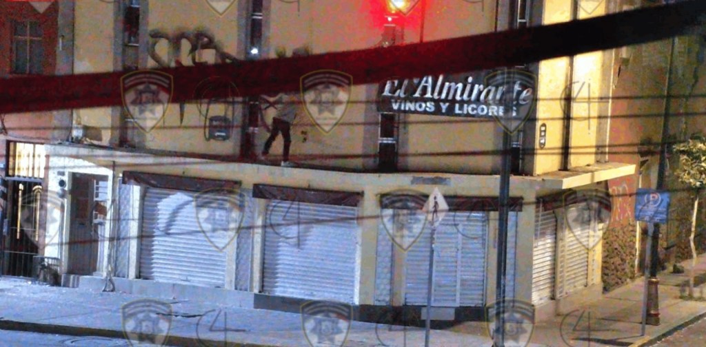 A través de video vigilancia de las cámaras del C4 Municipal, los agentes municipales detectaron a un hombre sobre la cornisa de un local comercial realizando pintas de grafiti y a una mujer en la zona de rodamiento realizando la misma actividad en la fachada. De inmediato se reportó el hecho a los agentes de Guardia Municipal que patrullaban el sector para acercarse al lugar de los hechos.