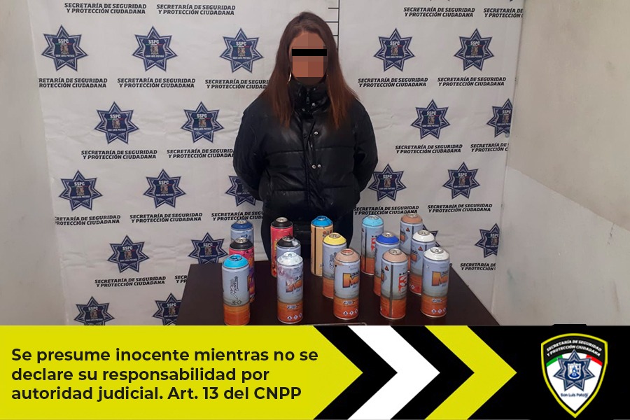• La mujer intentó oponer resistencia al arresto y lesionó a una de las oficiales aprehensoras. La implicada portaba en una mochila 15 latas de pintura en aerosol.