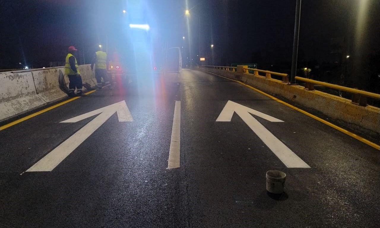 La aplicación de nueva pintura para delimitar las líneas de carriles se lleva a cabo durante horario nocturno, durante las últimas semanas de diciembre de este año, por lo que se solicita a la ciudadanía su colaboración para que atienda los señalamientos que recomiendan no ingresar a la vialidad durante la noche, para que pueda completarse esta etapa.