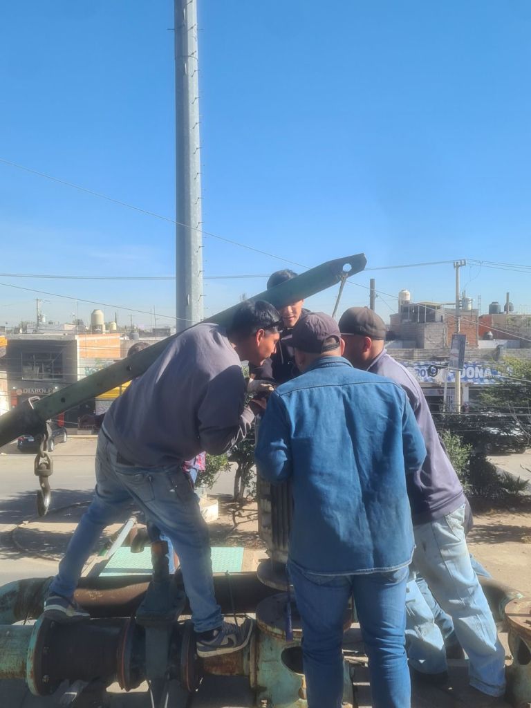 Los ingenieros del área de Operación y Mantenimiento trabajaron en la reposición de piezas que se vieron afectadas anteriormente durante su operación, mismas que fueron colocadas con apoyo de una grúa dejando listo el equipo para entrar en funcionamiento y regularizar el servicio en las colonias Aguaje 2000, El Aguaje y Salk.