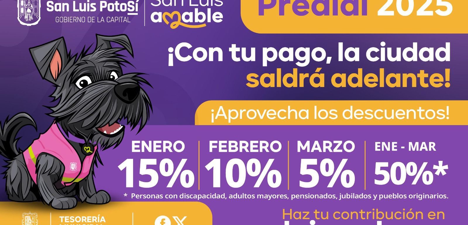 Asimismo, durante todo enero y hasta marzo, se mantendrá un atractivo descuento del 50 por ciento, aplicable a dueñas y propietarios de predios, con alguna discapacidad, adultas y adultos mayores, personas jubiladas, así como en beneficio de quienes forman parte de los pueblos originarios.