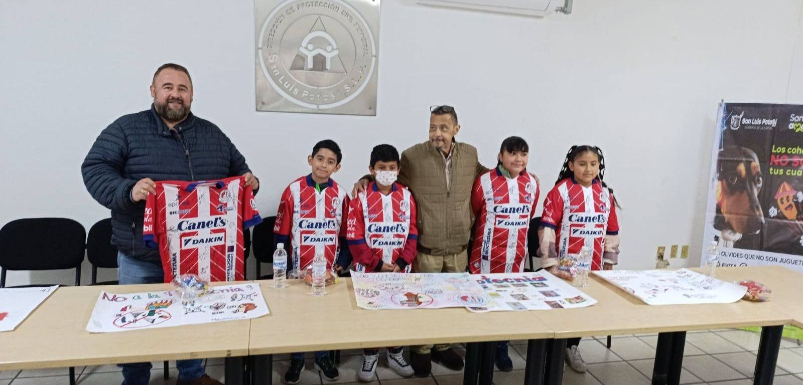 A esta campaña preventiva se unió el Club Atlético de San Luis, que obsequió playeras oficiales; en los dibujos de las niñas y niños ganadores se resaltaron los riesgos que implica el uso de pirotecnia.