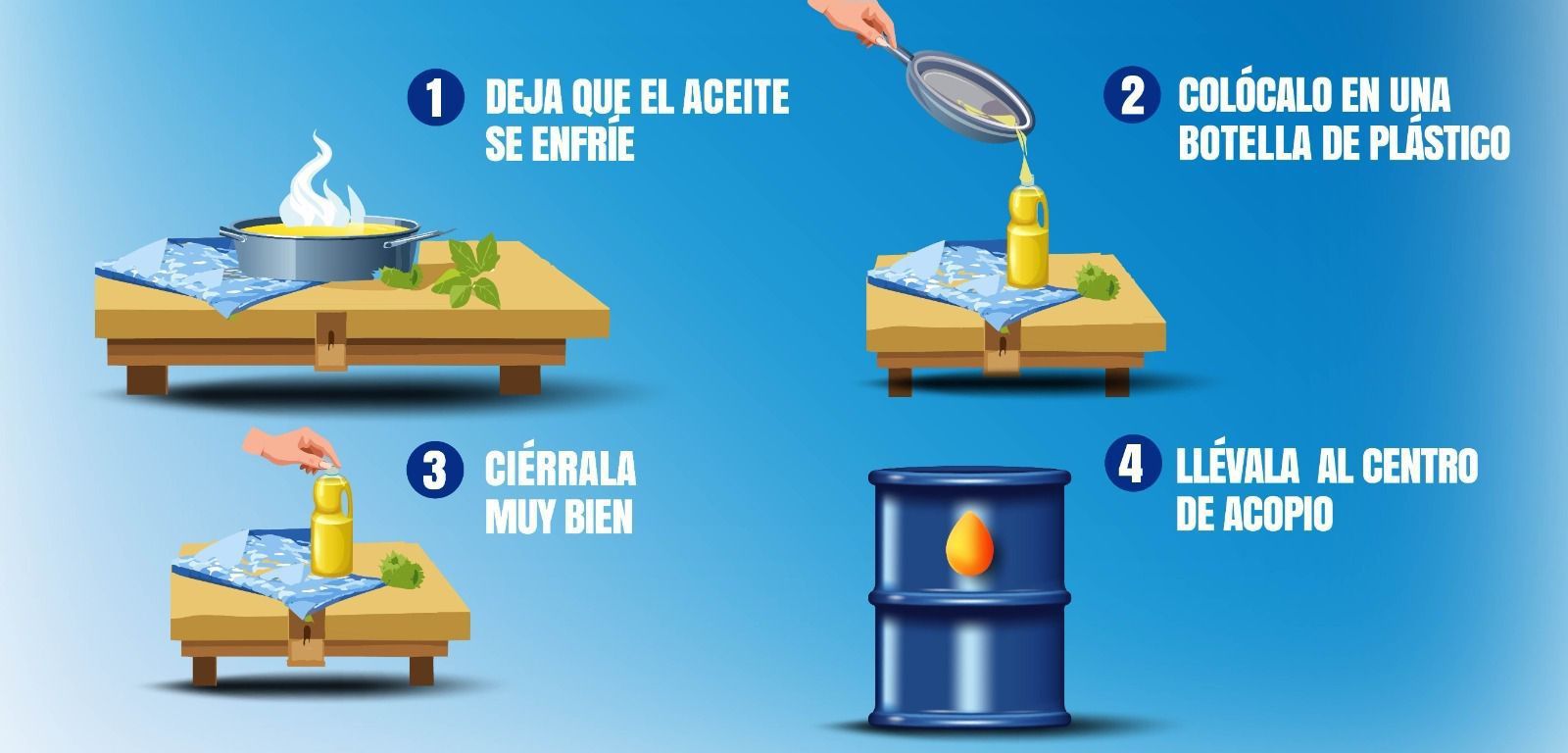 Igualmente para evitar el taponamiento de drenajes o alcantarillas y para que no haya contaminación de suelo y agua, se continúa con la recepción de aceite comestible ya usado en los hogares, para que sea desechado de la manera correcta; además se recibe PET, pero no desechables ya utilizados ni plásticos de un solo uso; también se pueden llevar llantas inservibles para que sean recicladas.