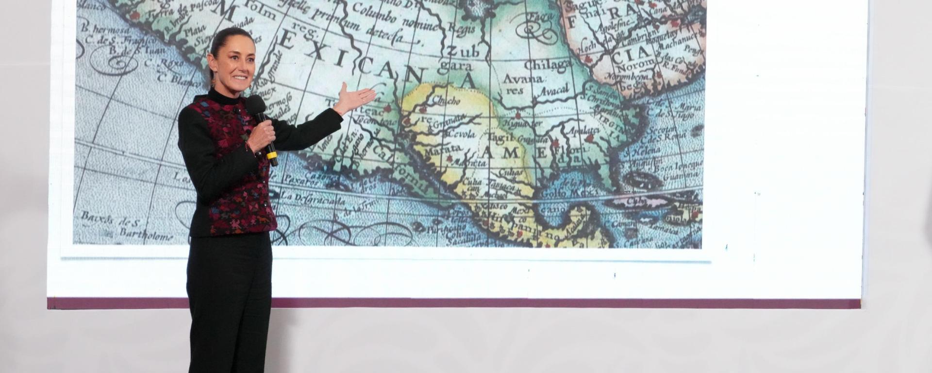 En La Mañanera de este jueves la Presidenta de México presentó un mapa de América Mexicana desde inicios del siglo XVII.