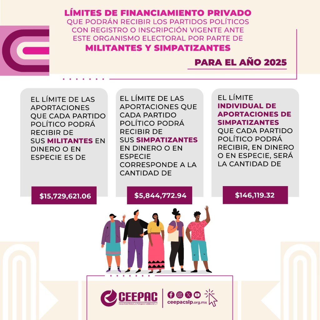 En la misma sesión del Consejo General del CEEPAC también se aprobó el acuerdo mediante el cual se determinan los topes del financiamiento privado para los partidos políticos con registro e inscripción vigente ante el organismo electoral por parte de militantes y simpatizantes durante el ejercicio 2025.