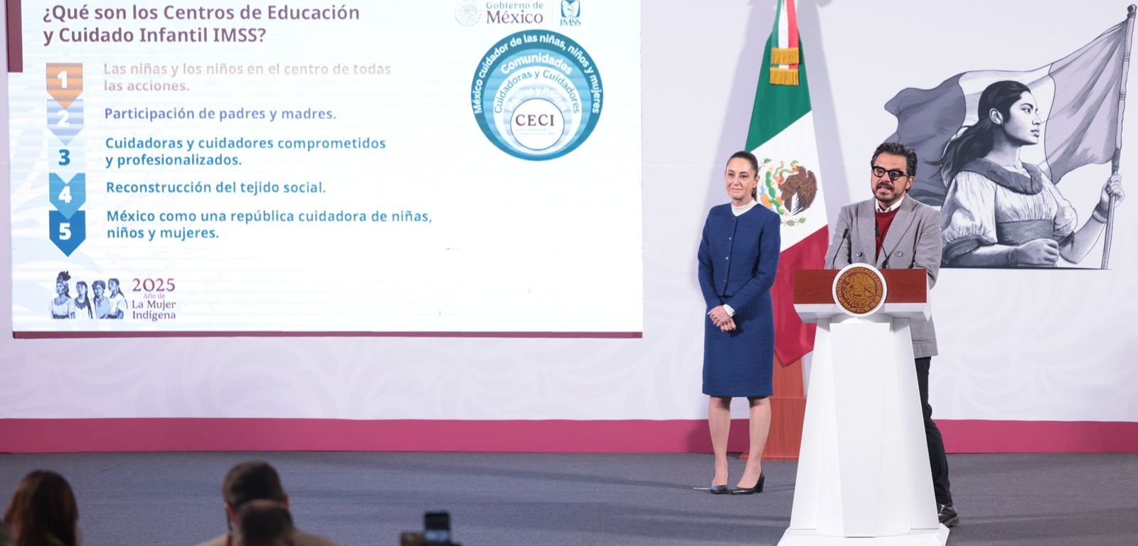 La Presidenta de México, Claudia Sheinbaum Pardo, presentó los Centros de Educación y Cuidado Infantil (CECI), los cuales destacó son un nuevo modelo de atención a la infancia a través del Instituto Mexicano de Seguridad Social (IMSS), el cual iniciará, en cumplimiento de uno de sus compromisos de campaña, con la construcción de 12 centros en Ciudad Juárez, Chihuahua.