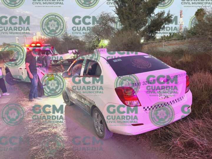 La tarde de este jueves, agentes de la Guardia Civil Municipal de Soledad, localizaron un taxi abandonado que habría sido utilizado por presuntos delincuentes tras un violento asalto a una oficina recaudadora en la capital potosina.