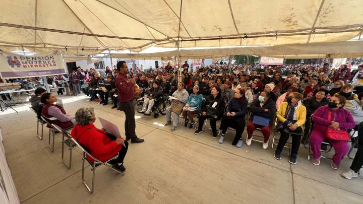En una exitosa gira por las cuatro regiones de la Entidad, el delegado de Programas para el Bienestar, Guillermo Morales López, entregó a miles de derechohabientes de entre 64 y 65 años la tarjeta de la Pensión Mujeres Bienestar, con la finalidad de que reciban bimestralmente un monto económico de 3 mil pesos como ayuda a la solvencia de sus gastos en el hogar.