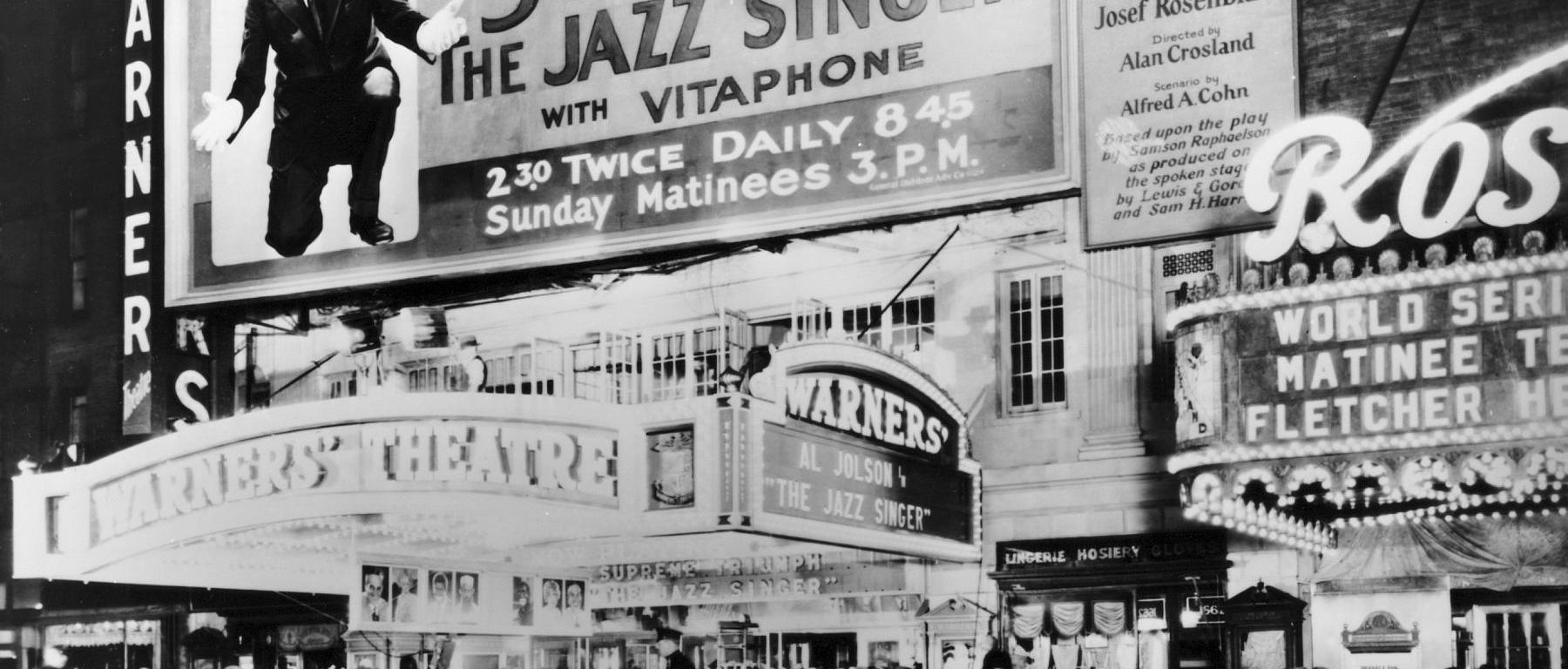 La primera proyección comercial de una película sonora sincronizada en Nueva York fue en 1927 con el estreno de El cantante de jazz. Esta película fue la primera comercial sonora de la historia del cine.