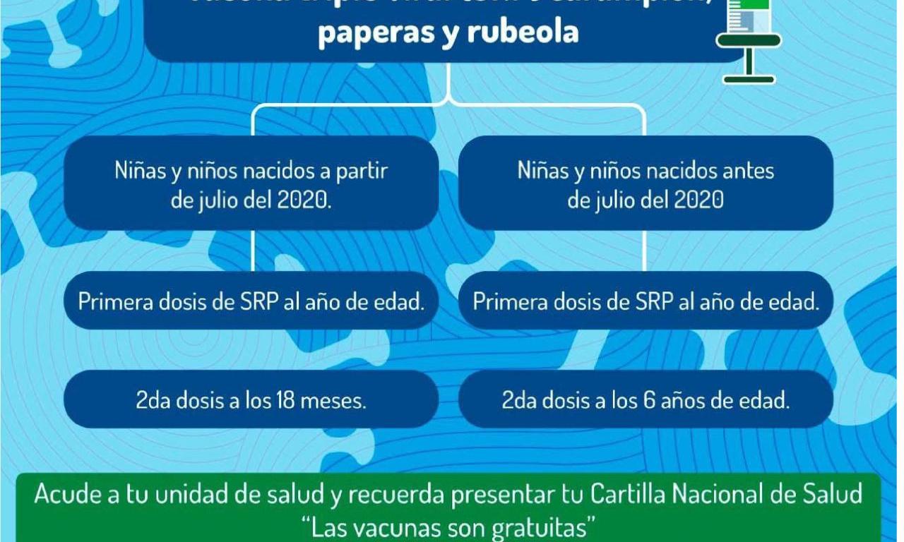 El funcionario indicó que la vacuna que se aplica es la Triple Viral que protege contra sarampión, rubéola y parotiditis, para adolescentes de 10 a 19 años y adultos que no cuenten con esquema completo se aplica la doble viral, que protege contra el sarampión y rubéola.
