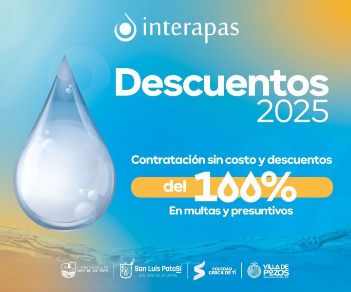 Como parte del programa de descuentos para el 2025, el Interapas ofrece estímulos fiscales a propietarios que no tienen contratados los servicios de agua potable, alcantarillado y saneamiento, ofreciendo contratos sin costo y 100 por ciento de descuento en multas y presuntivos.